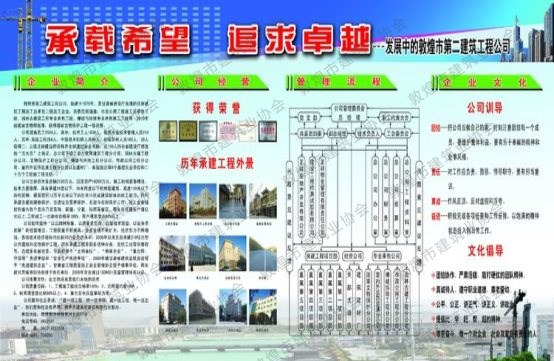 公司面向社会承诺:“建一项工程、树一块丰碑:建一流工程、做一流企业”,我们愿和社会各界同仁携手共建美好家园和现代化都市。