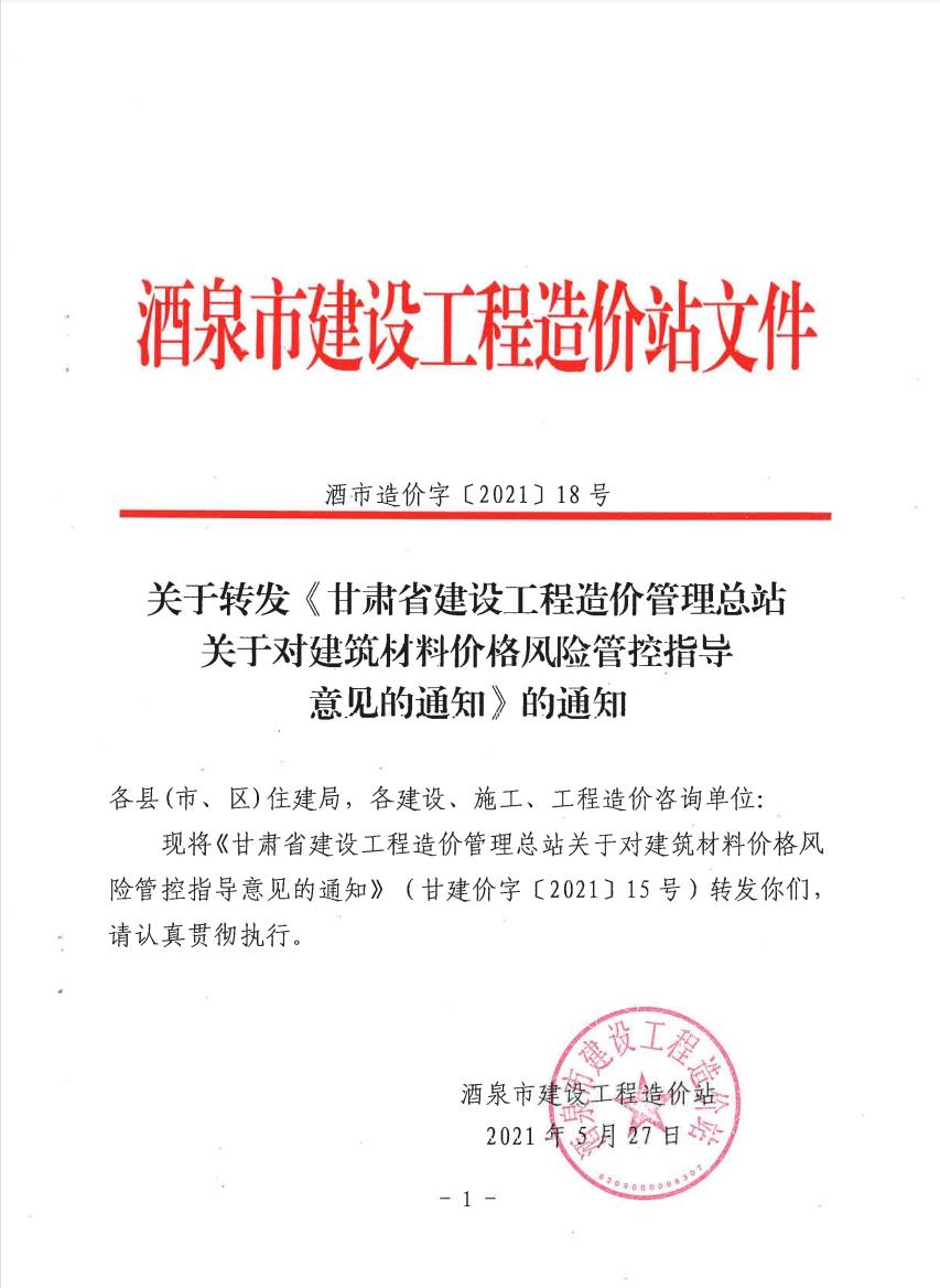 酒市造价字【2021】18号关于转发《甘肃省建设工程造价管理总站关于对建筑材料价格风险管控指导意见的通知》的通知(1).pdf