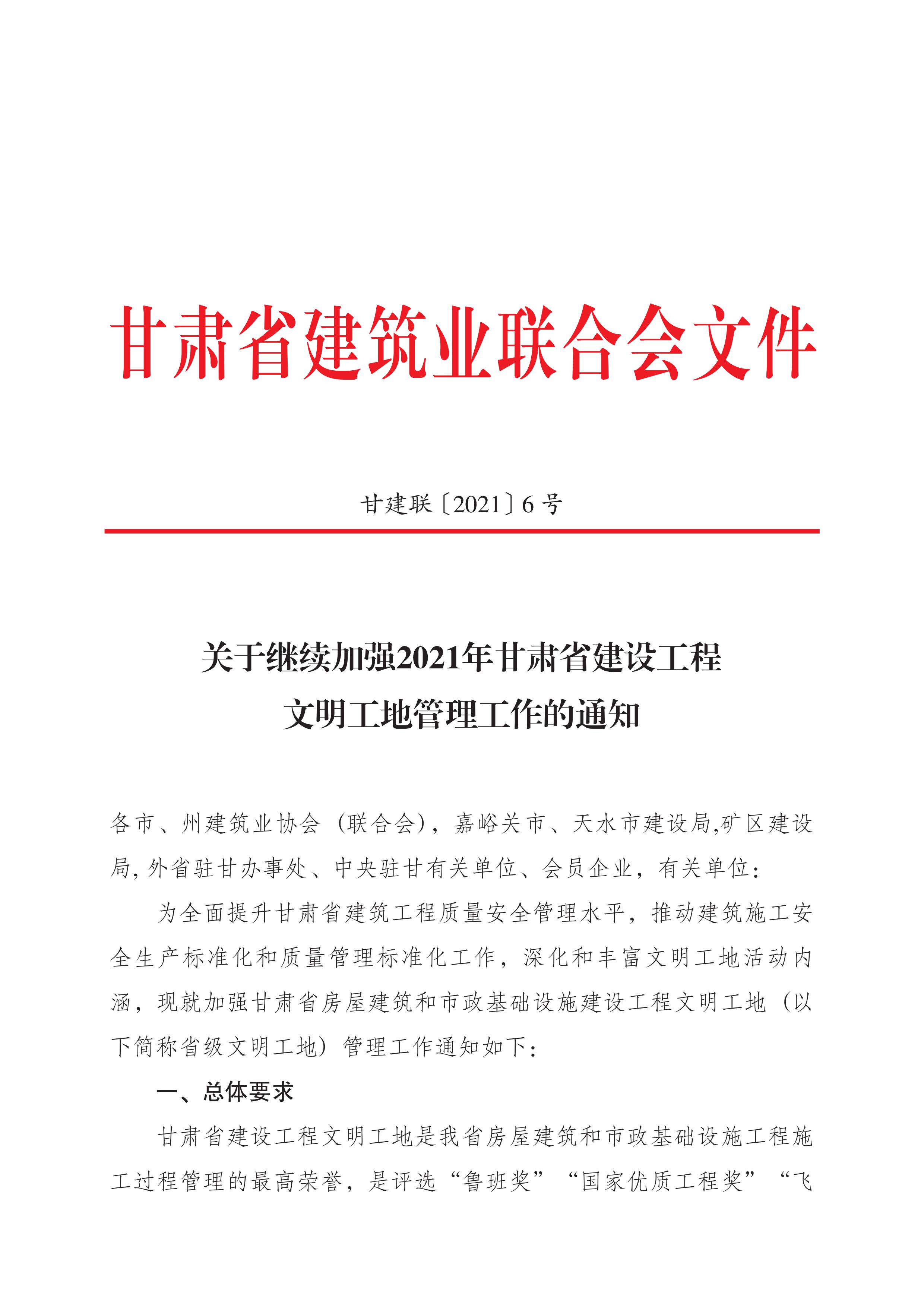 甘肃省建筑业联合会关于继续加强2021年甘肃省建设工程文明工地管理工作的通知