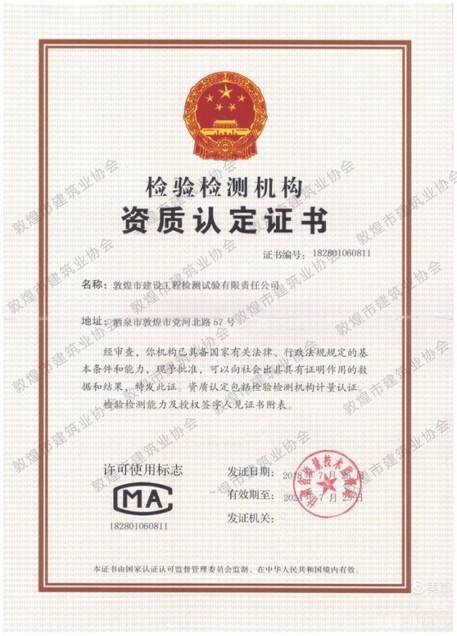 科学公正的——敦煌市建设工程检测试验有限责任公司